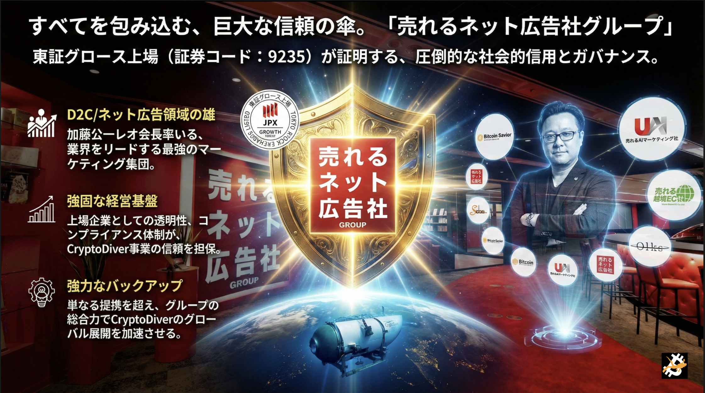 (東証グロース市場、証券コード9235)と、CryptoDiver運営事務局は