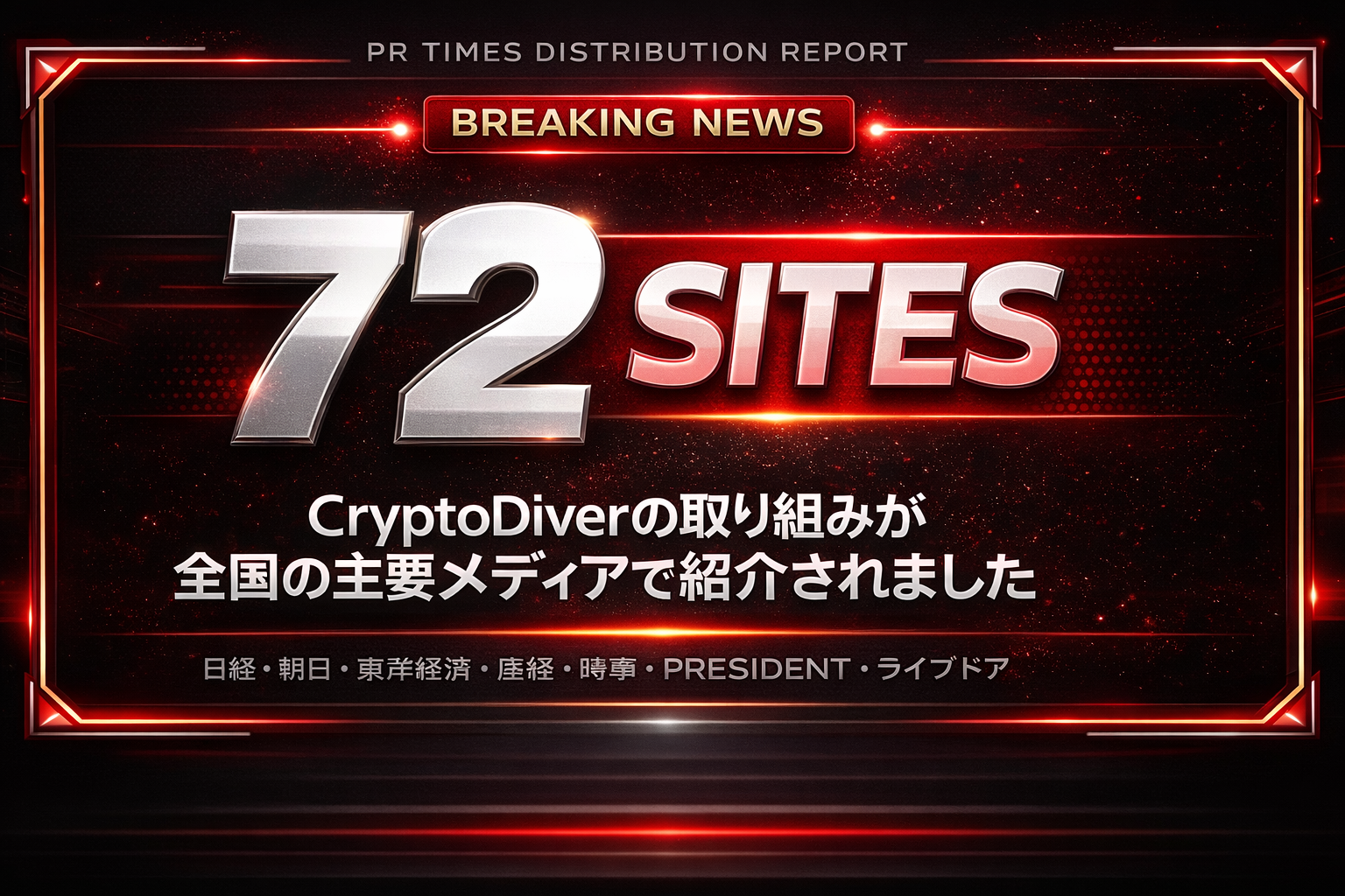 今回の配信では、転載・記事利用を含め72サイトでの掲載実績が報告されています。総合ニュースメディアからビジネス系メディアまで幅広く掲載されたことで、CryptoDiverの発信や取り組みを、より多くの方に届ける機会につながりました。