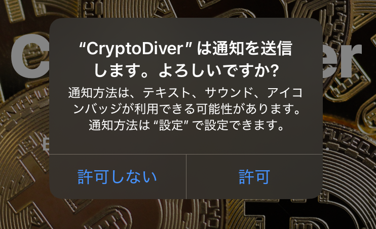 通知の許可設定が出てきますので任意の設定を行ってください。通知オフでもかまいません。