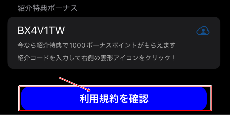 が表示されます。表示されない場合は紹介コードをご確認ください。